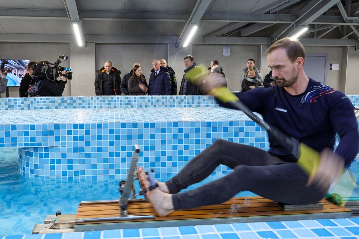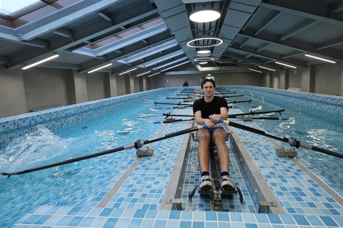 Внутри комплекса — два бассейна (25-метровый плавательный и отдельный — для гребли), тренажерные залы для пловцов и гребцов, а также залы для единоборств, общей физподготовки. Здание адаптировано для маломобильных посетителей.