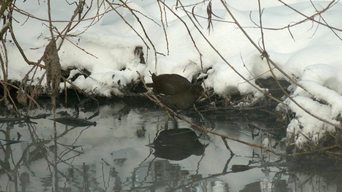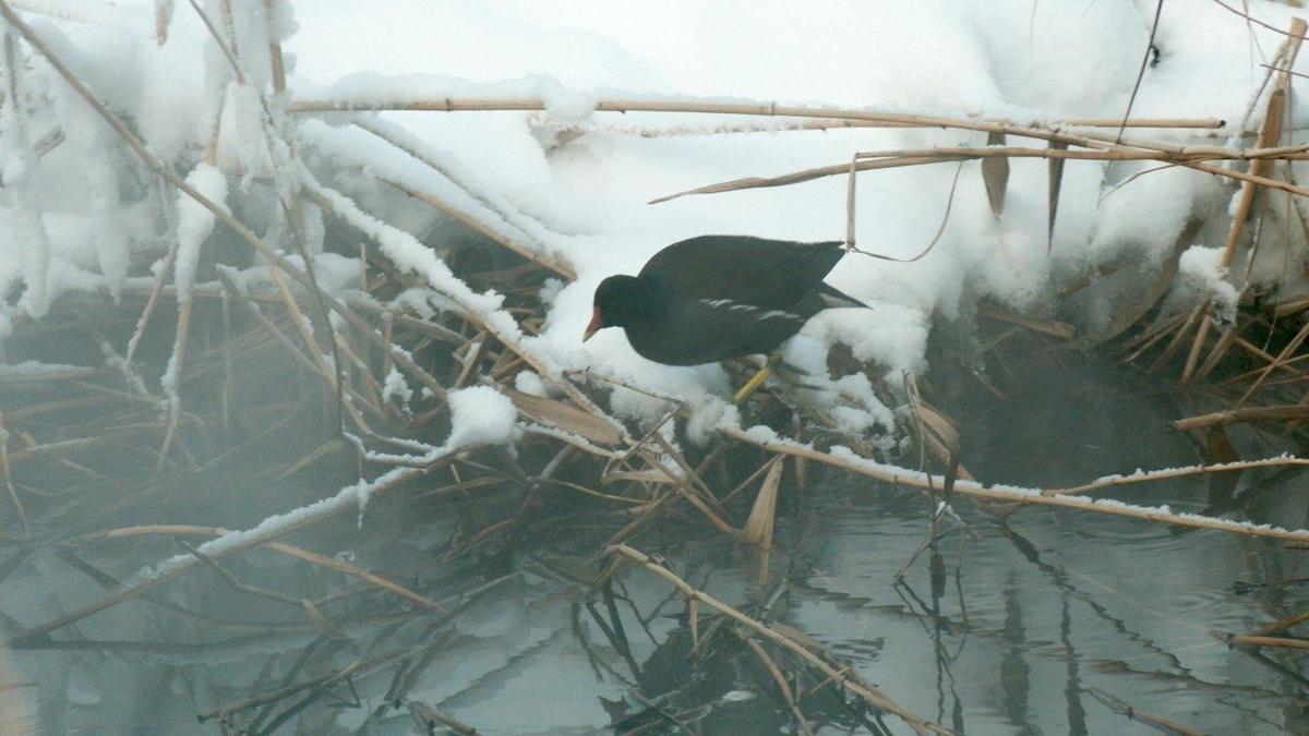 В Петербурге этой зимой можно встретить птицу из Красной книги города — камышницу. По крайней мере это удалось биологу Павлу Глазкову, гулявшему по одному из парков с незамерзающим прудом.