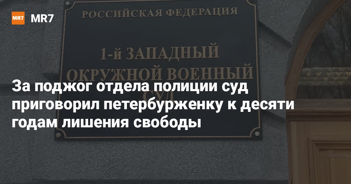 В 1-м Западном окружном военном суде огласили приговор делопроизводителю Петровского колледжа Анне Осиповой, устроившей поджог в отделе полиции № 37. Несмотря на заверения подсудимой, что она действовала под влиянием мошенников, суд счёл женщину виновной в теракте и приговорил к десяти годам лишения свободы в колонии общего режима. Однако квалификацию преступления, совершённого Анной, суд смягчил, изменив пункт «в» части 2 статьи 205 УК РФ на часть 1 той же статьи Уголовного кодекса. Таким образом «теракт, повлекший значительный материальный ущерб» в приговоре стал просто «терактом».