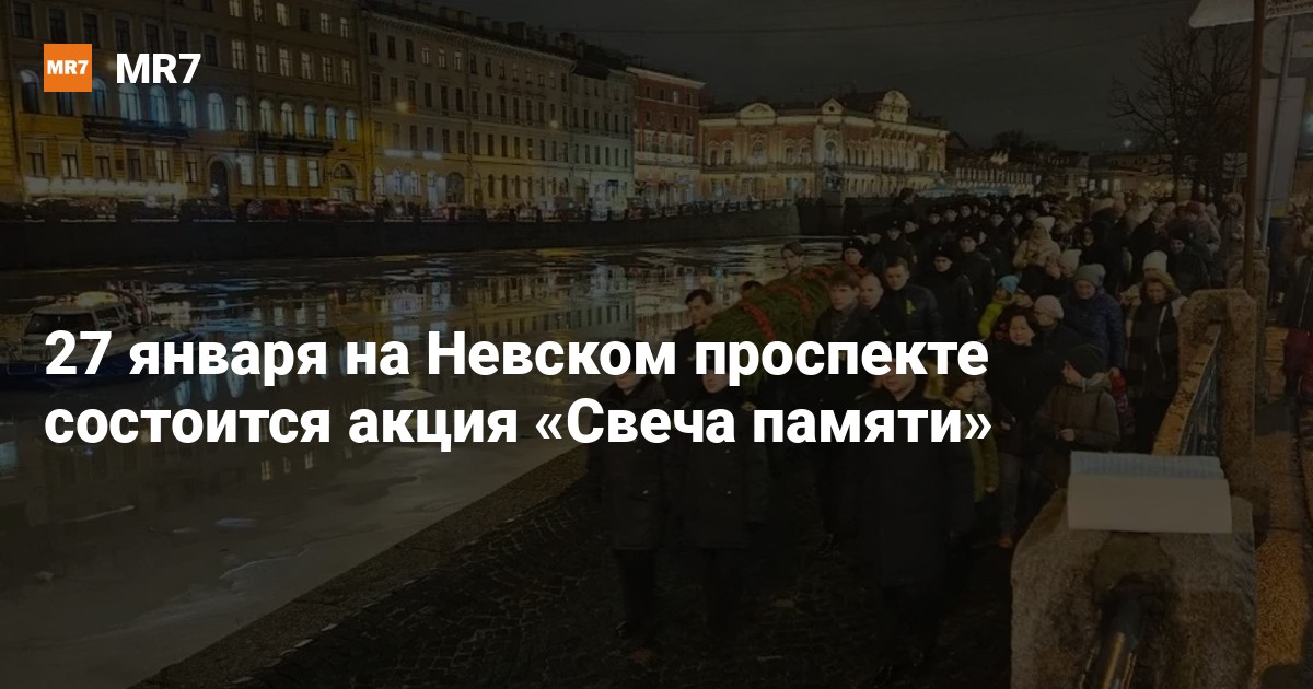27 января в 18:00 на площади перед Дворцом творчества юных состоится традиционная акция «Свеча памяти», сообщили в Telegram-канале правительства Петербурга. Мероприятие приурочено к годовщине полного освобождения Ленинграда от фашистской блокады.