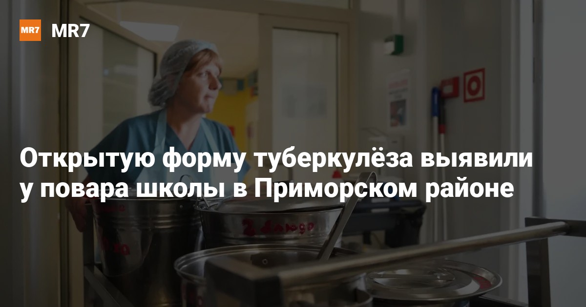 В Приморском районе Петербурга в школе № 575 у повара столовой выявили открытую форму туберкулёза. Об этом сегодня сообщила глава «Лиги безопасного интернета» Екатерина Мизулина, ссылаясь на обращения родителей.