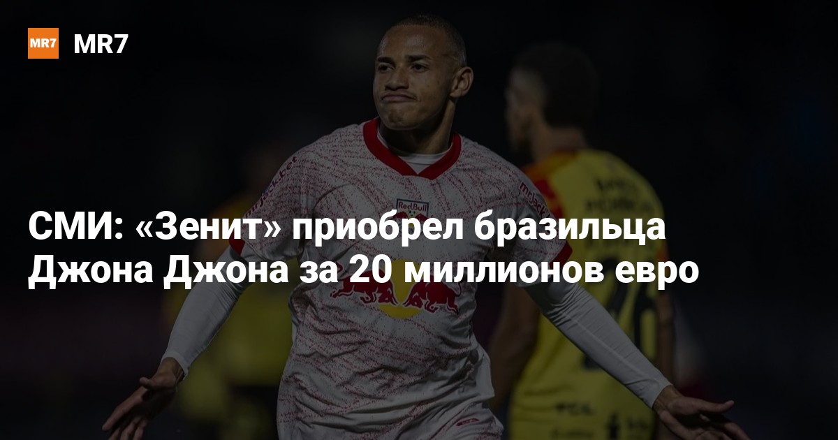 Петербургский «Зенит» подписал контракт с бразильским полузащитником «Ред Булл Бригантино» Джонатаном Дос Сантосом Розой, более известным как Джон Джон, сообщил авторитетный итальянский инсайдер и журналист Фабрицио Романо в соцсетях.