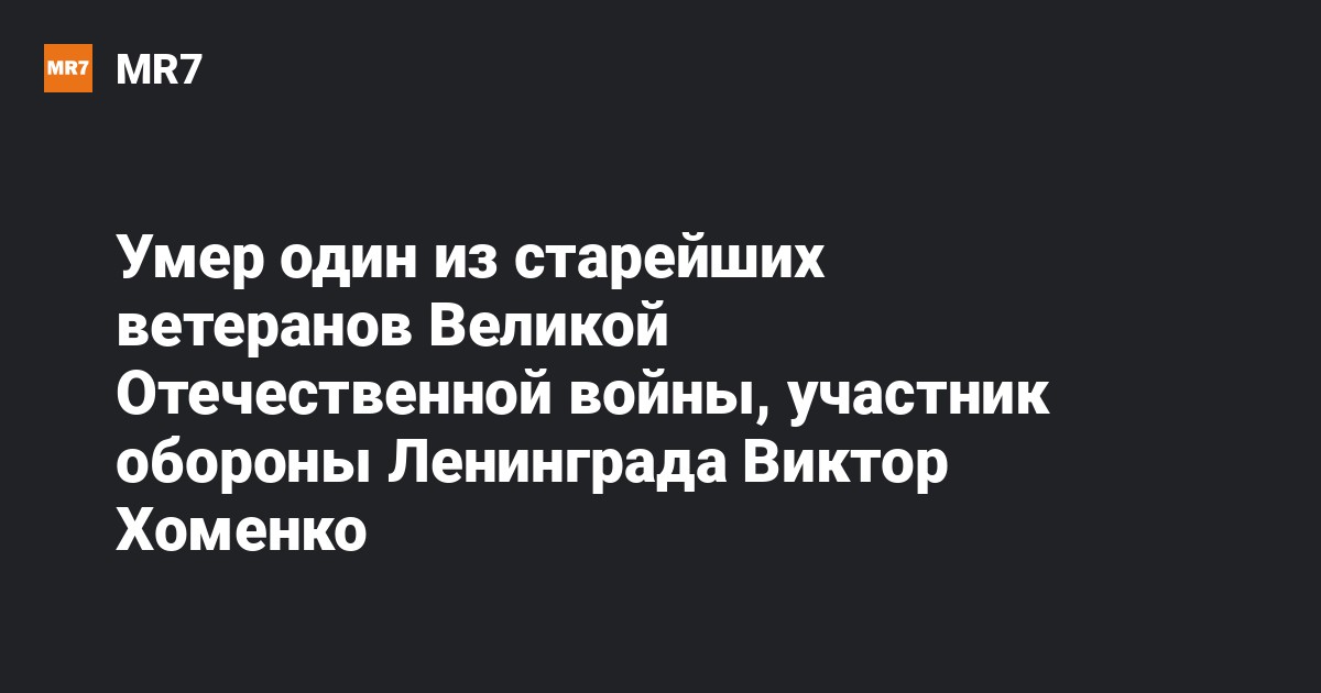 В Канаде скончался один из самых пожилых ветеранов Великой Отечественной войны, участник обороны Ленинграда Виктор Хоменко, сообщили 26 января в посольстве РФ в североамериканской стране.