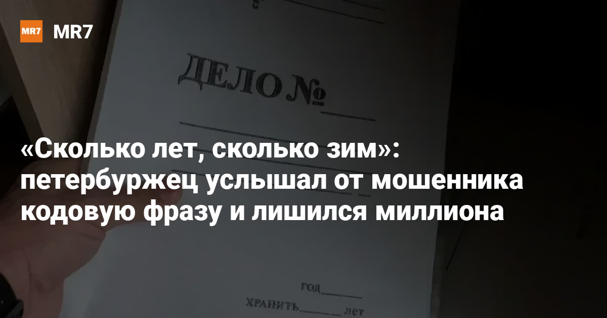 Мошенники проинструктировали пенсионера, что деньги он должен будет передать курьеру, когда услышит кодовую фразу. На встрече с жертвой курьер сказал «Привет, сколько лет, сколько зим». Услышав нужную фразу, петербуржец отдал незнакомцу миллион рублей. После чего злоумышленник скрылся с места.