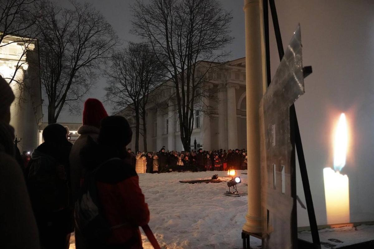 Рядом с Дворцом творчества юных вечером 27 января провели традиционную для этого дня акцию «Свеча памяти». Мемориальное мероприятие, как и всегда, было посвящено жителям блокадного Ленинграда.