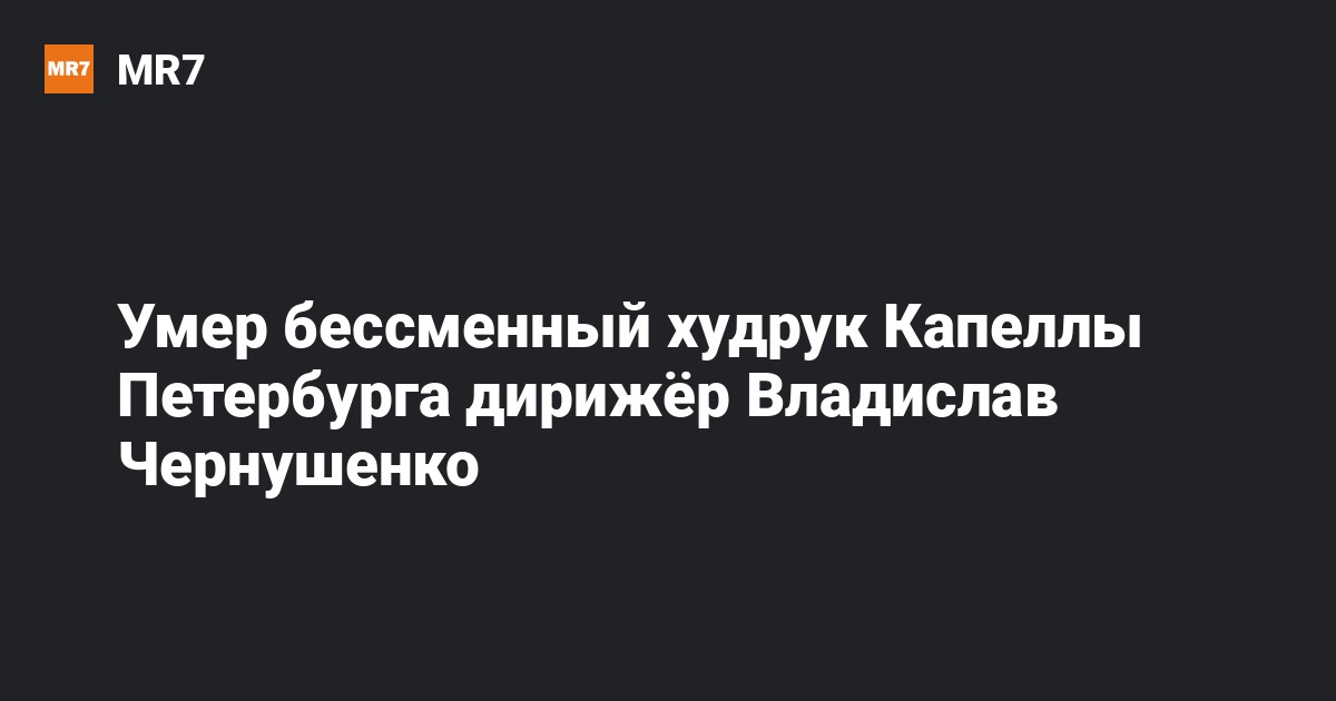 В Петербурге в возрасте 90 лет после тяжёлой болезни скончался народный артист СССР, дирижёр и хормейстер Владислав Чернушенко. О его смерти 27 января сообщила Капелла Петербурга, бессменным художественным руководителем которой Чернушенко был с 1974 года.