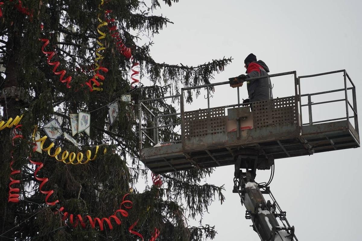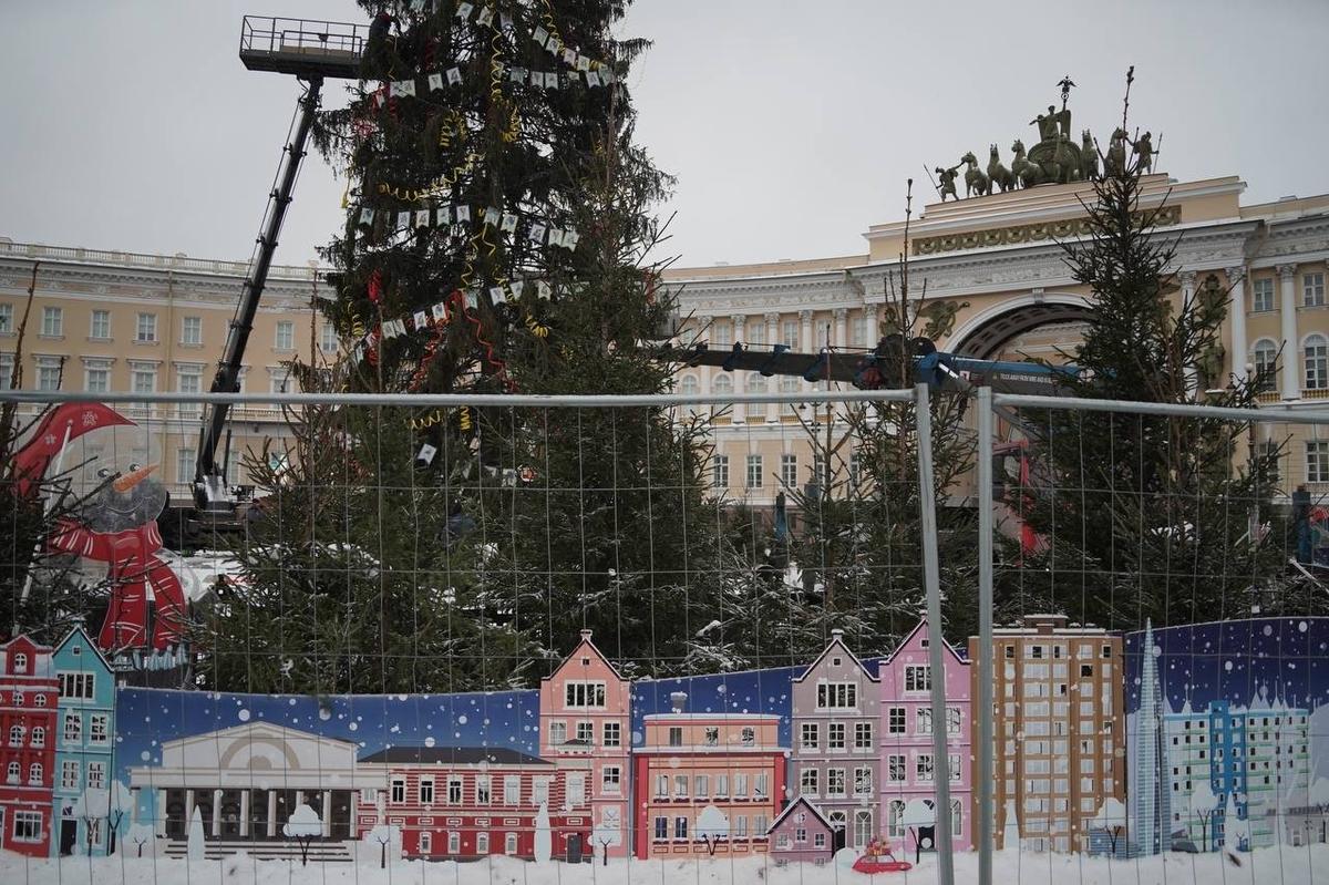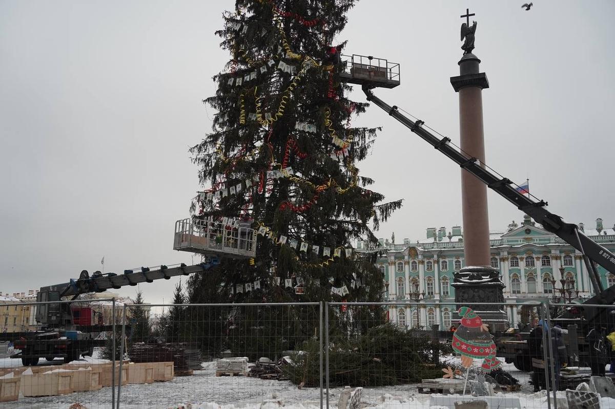 Рабочие 28 января приступили к разбору и демонтажу главной новогодней ёлки, украшавшей с конца декабря Дворцовую площадь, что запечатлел корреспондент MR7. Участок работ огородили забором, на месте событий орудует подъёмный кран.