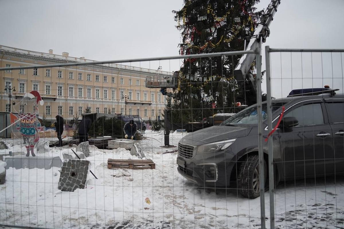 В прошлом году ёлку на Дворцовой начали разбирать 14 января.