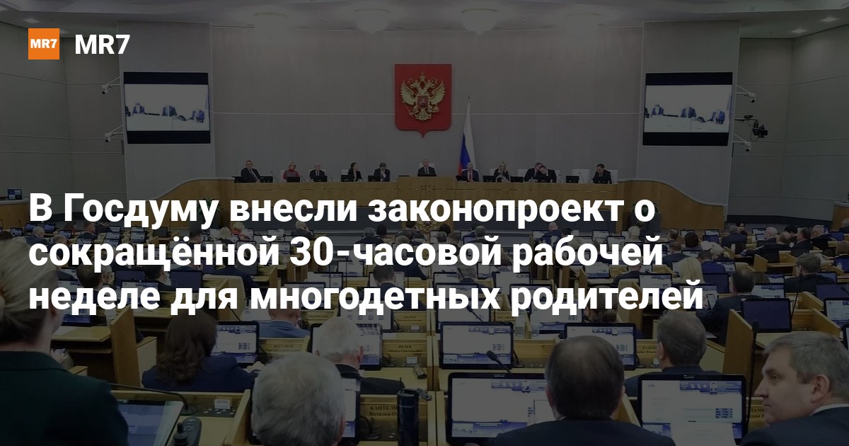Инициатива предлагает дополнить Трудовой кодекс РФ новым положением. Оно закрепит право одного из родителей в многодетной семье на сокращенную рабочую неделю продолжительностью не более 30 часов. В настоящее время нормальная продолжительность рабочего времени в России составляет 40 часов в неделю, и многодетные родители не входят в перечень категорий, имеющих право на ее сокращение.