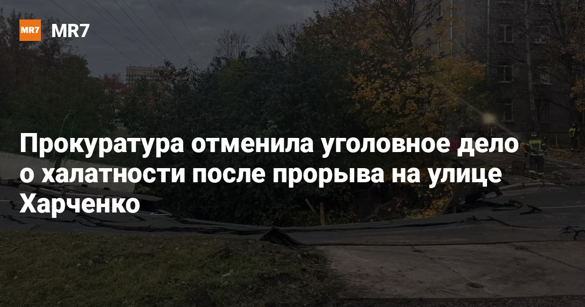 Петербургская прокуратура отменила уголовное дело по части 1 статьи 293 УК РФ (халатность) после провала грунта и прорыва канализационного коллектора в конце октября 2025 года на улице Харченко.