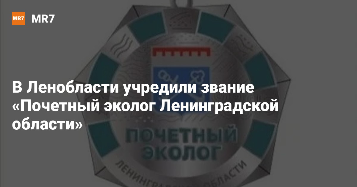 Администрация Ленобласти 30 января утвердила новую региональную награду — звание «Почетный эколог Ленинградской области». Соответствующее постановление подписал губернатор Александр Дрозденко.