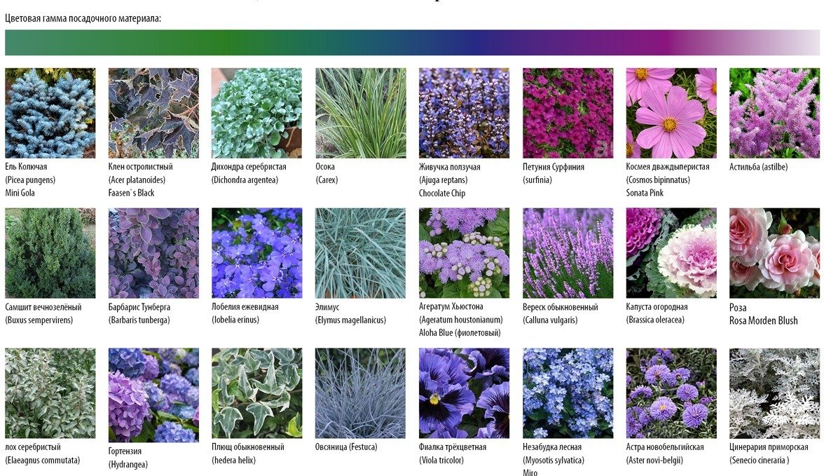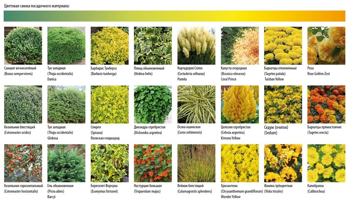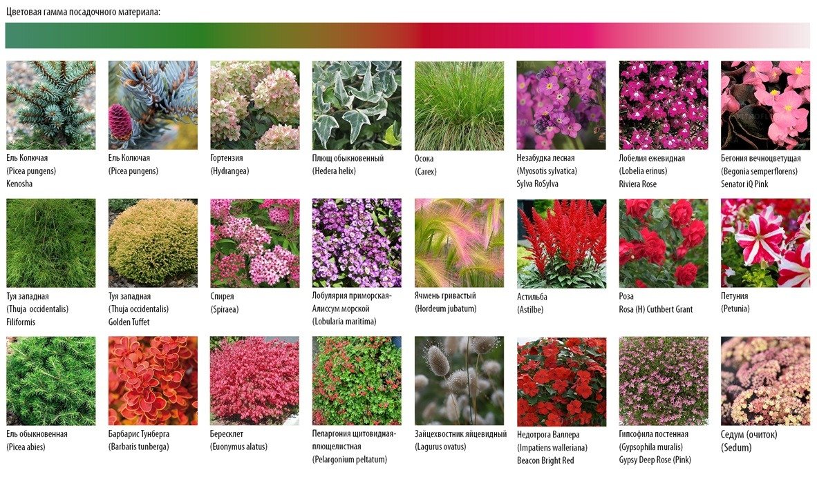 Так, в документе есть рекомендации по типу озеленения с учетом цветовой гаммы.