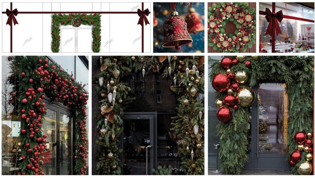 - типовые решения для оформления входов, входных групп, витрин, окон фасадов зданий к Новому году и 8 Марта.
