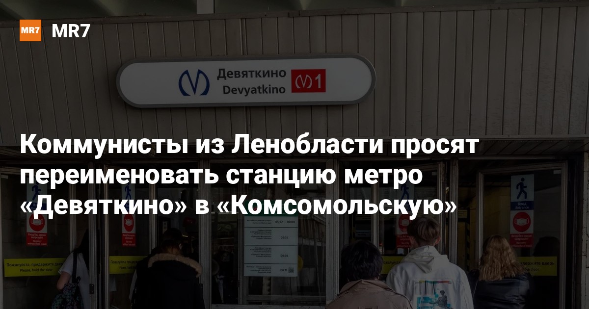 Депутаты Заксобрания Ленобласти от КПРФ просят вернуть станции метро в Петербурге «Девяткино» историческое название — «Комсомольская», сообщает 4 февраля 47news, у которой в распоряжении есть письмо коммунистов.