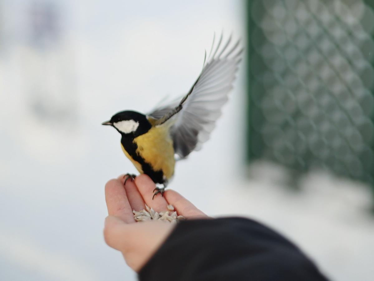 — Держи, держи, — ласково говорит Ира драчливым голубям, — только маленьких не обижай, — и бросает семечки. Во время отвлекающего манёвра лазоревки слетаются к ней на ладони. Без внимания не остаётся и степенный дрозд, до того сидевший поодаль.