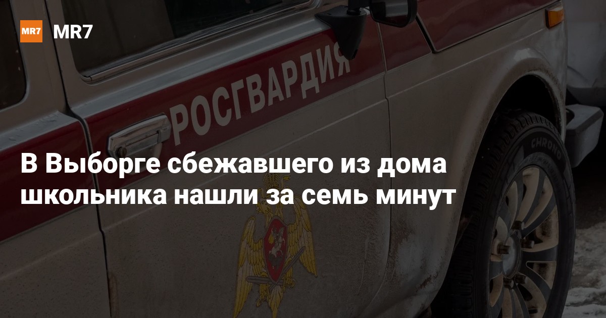 Вчера 12-летний мальчик «самовольно ушёл из дома» в Выборге. Его нашли спустя семь минут после получения сигнала о пропаже, передаёт telegram-канал Главного управления Росгвардии по СПб и ЛО.