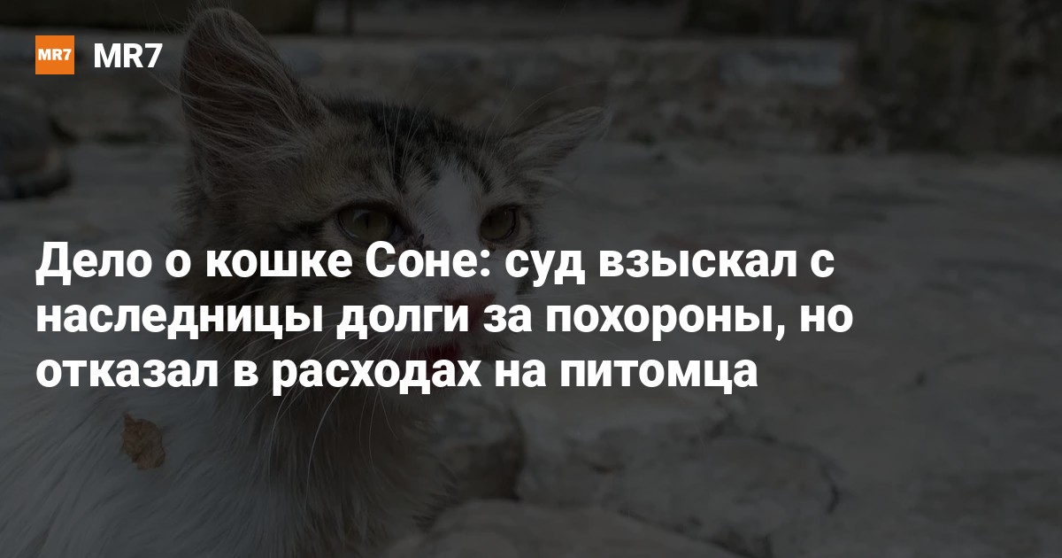 Судья указал, что истица не предоставила доказательств того, что кошка Соня являлась собственностью умершей, и не подтвердила, что заявленная крупная сумма была потрачена именно на содержание этого конкретного животного.