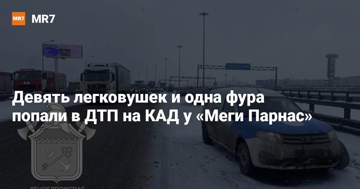 На 25-м километре внешнего кольца у ТЦ «Мега Парнас» столкнулись ехавшие в попутном направлении девять легковых автомобилей и одна грузовая машина.