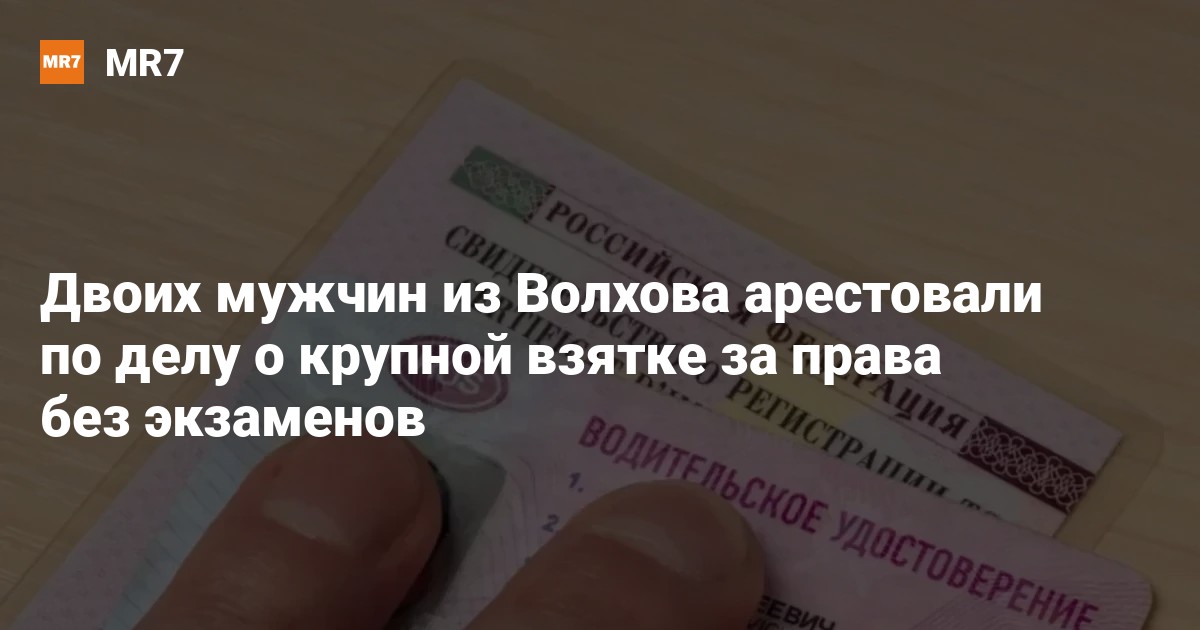 В Волховском районе Ленобласти двоих мужчин подозревают в даче крупной взятки сотрудникам МРЭО Госавтоинспекции для получения водительских прав без сдачи экзамена, сообщили 9 февраля в СК по региону.