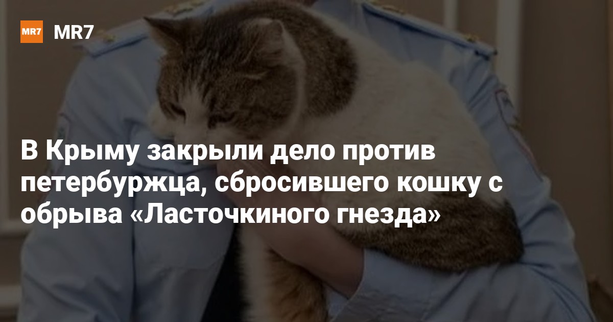 Уголовное дело против туриста из Петербурга, сбросившего кошку Мусю с обрыва замка «Ласточкино гнездо», прекратили из-за отсутствия травм у животного, сообщает 10 февраля ТАСС со ссылкой на крымское МВД.