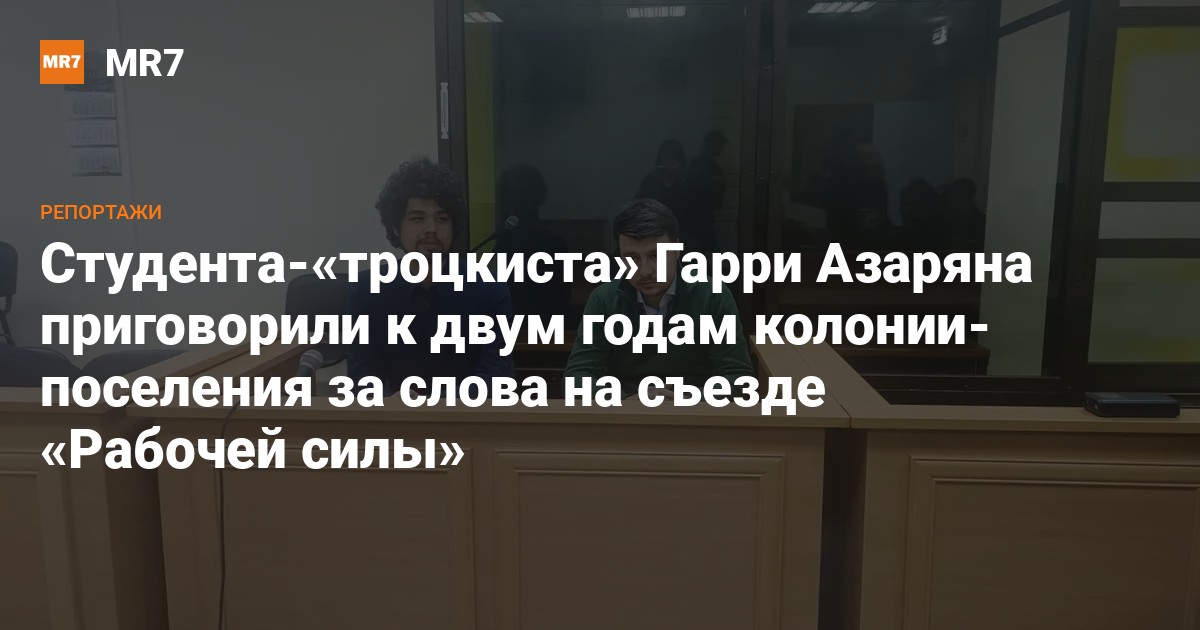 «Полностью признаю вину», — заявил на заседании 24-летний бывший студент-политолог СПбГУ Гарри Азарян. В 1-м Западном окружном военном суде за одно заседание 11 февраля рассмотрели уголовное дело и вынесли приговор: два года лишения свободы в колонии-поселении. Гарри надеялся на штраф, но в суд пришёл с вещами.