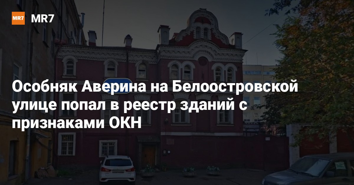 КГИОП накануне обновил перечень зданий, имеющих признаки объекта культурного наследия, и включил туда особняк Аверина (Белоостровская улица, дом 26, корпус 2).