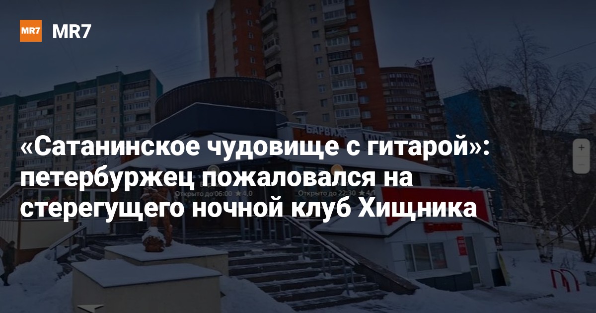 Ночной клуб в Клочковом переулке уже долгие годы охраняет Хищник, инопланетный воин из одноименной кинофраншизы. Многие к арт-объекту успели привыкнуть, но не все. Один из петербуржцев пожаловался на металлическую скульптуру в ГАТИ, рассказали в ведомстве 13 февраля.