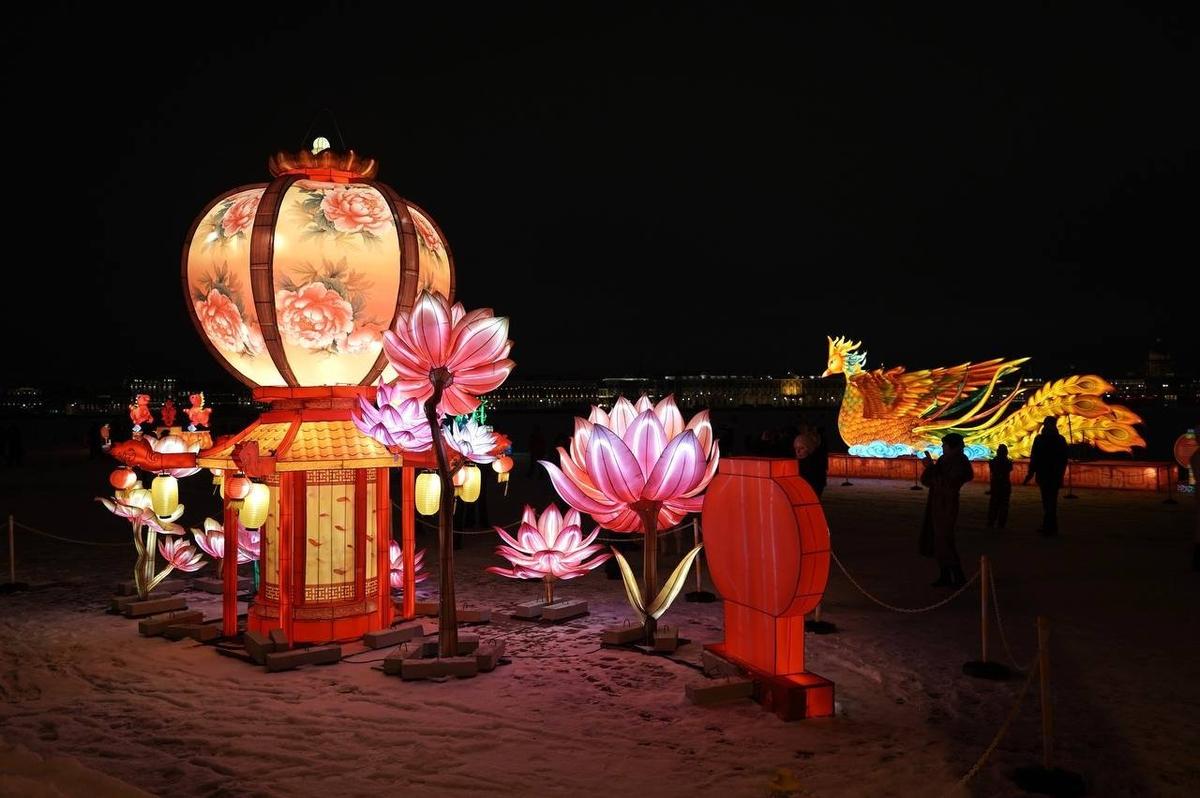 В Петербурге стартовал фестиваль китайских фонарей. На стрелке Заячьего острова установили десять световых композиций высотой до четырех метров и длиной до десяти метров. Среди них — дракон, феникс и символ наступающего 4724 года по восточному календарю — огненная лошадь.
