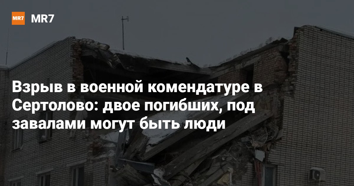 В здании военной комендатуры в городе Сертолово Ленобласти произошел взрыв, сообщает телеканал «78». В результате обрушились перекрытия на втором и третьем этажах, есть угроза дальнейшего обрушения.
