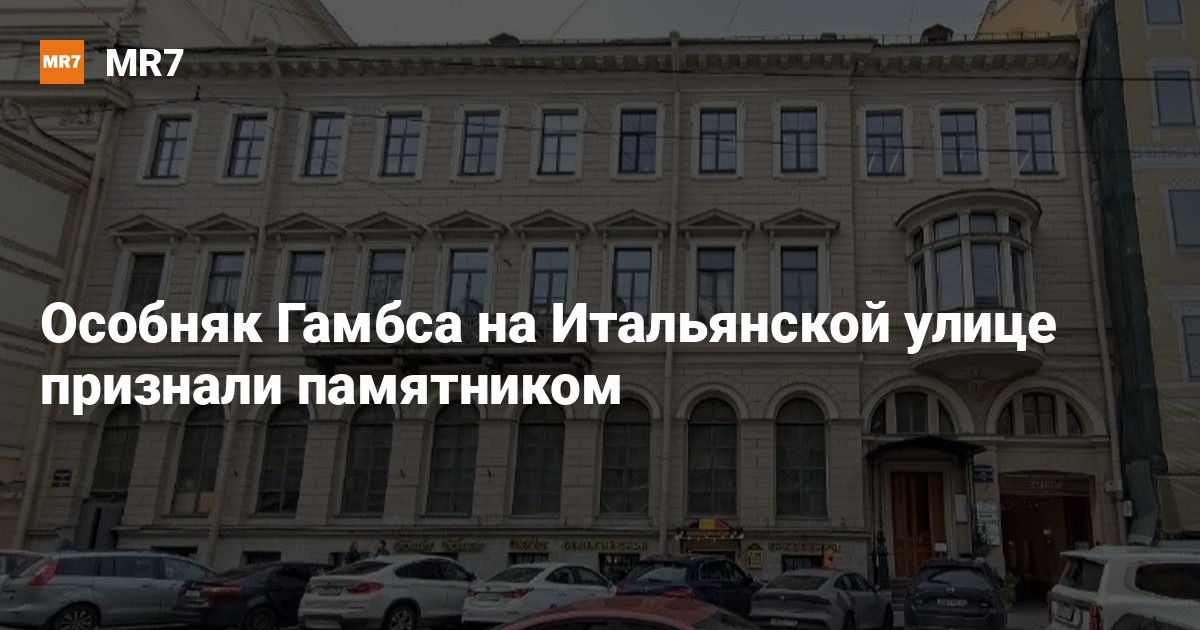 КГИОП включил в реестр памятников регионального значения Дом механика Генриха Гамбса (здание Центрального управления Главного общества российских железных дорог) на Итальянской улице, 17.
