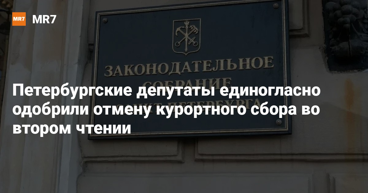 На заседании Законодательного собрания Петербурга депутаты приняли во втором чтении законопроект, отменяющий курортный сбор в городе. Документ поддержали единогласно: 48 голосов «за», при этом голосовавших против и воздержавшихся не было.