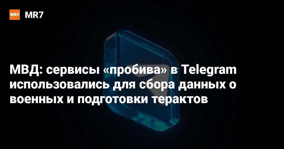 В управлении по борьбе с киберпреступлениями МВД России изданию «Коммерсант» заявили, что так называемые сервисы «пробива» в Telegram активно применялись для сбора информации о военнослужащих, сотрудниках правоохранительных органов и представителях власти. Эти данные затем использовались для последующих диверсионно-террористических актов. Также сегодня Роскомнадзор обвинил администрацию мессенджера в поддержке данных сервисов.