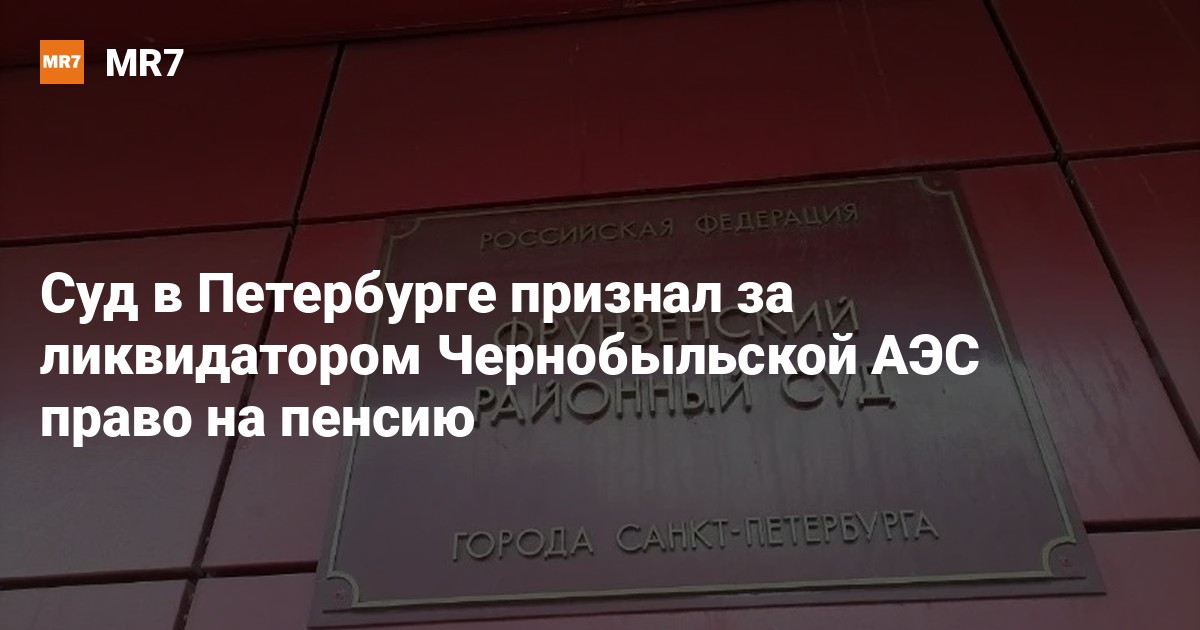 Фрунзенский районный суд подтвердил факт участия петербуржца в ликвидации последствий аварии на Чернобыльской АЭС, о чем 20 февраля рассказала объединенная пресс-служба городских судов. Благодаря этому обстоятельству теперь мужчине должны будут назначить пенсию.