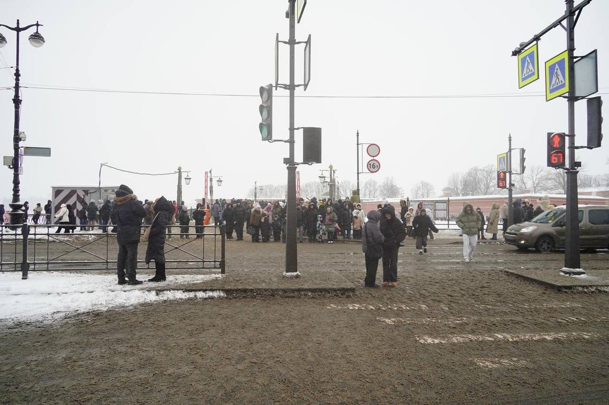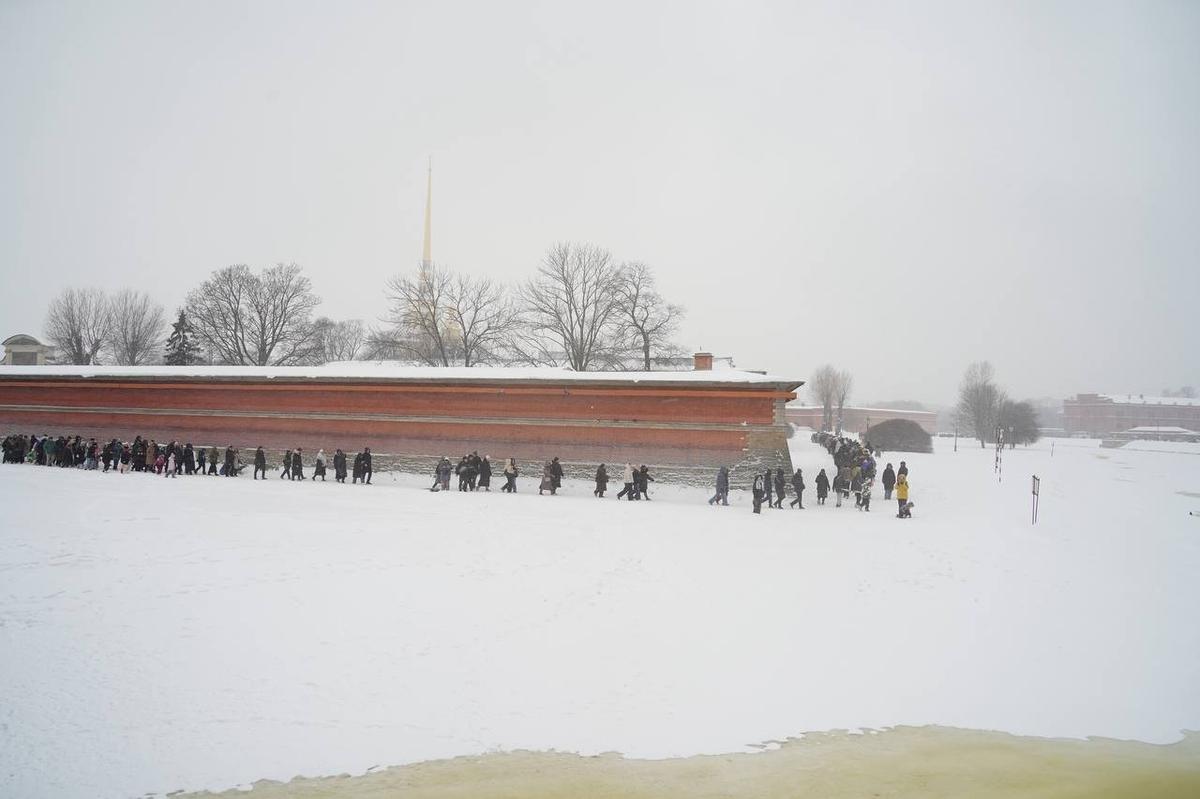 Праздновать отправились тысячи людей, создав огромную очередь на пути к месту гуляний. Причем начиналась она еще от Иоанновского моста.