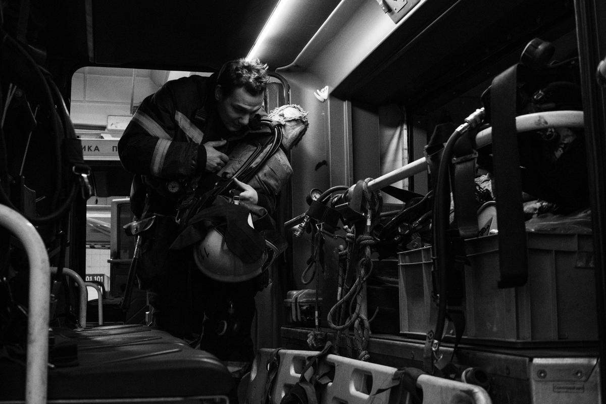 — Я тогда университет только закончил — телекоммуникаций имени Бонч-Бруевича. Я учился на инженера оптоволоконных сетей. Когда поступал, казалось, что перспективная профессия, а выпустился — и работы толком нет, уже никому не нужен; где были вакансии — там уже понабрали специалистов. И мне знакомые предложили в пожарные пойти. Говорили: «Приходи, вакансии есть. Хочешь весело-задорно провести молодость?» Почему бы и нет. Вот — в итоге уже почти пять лет тут. Учился, сдавал зачёты, получал допуски, проходил освидетельствования. Почти год на это ушёл.