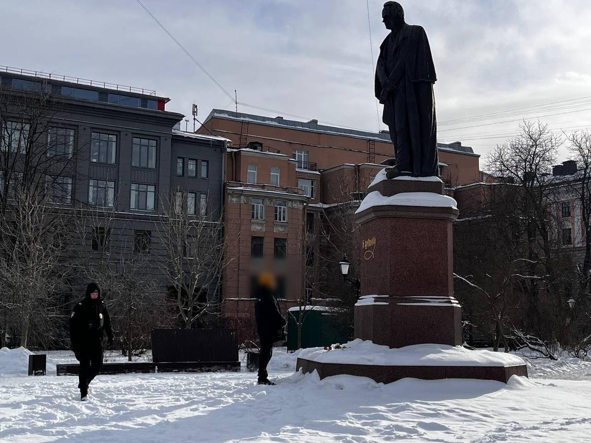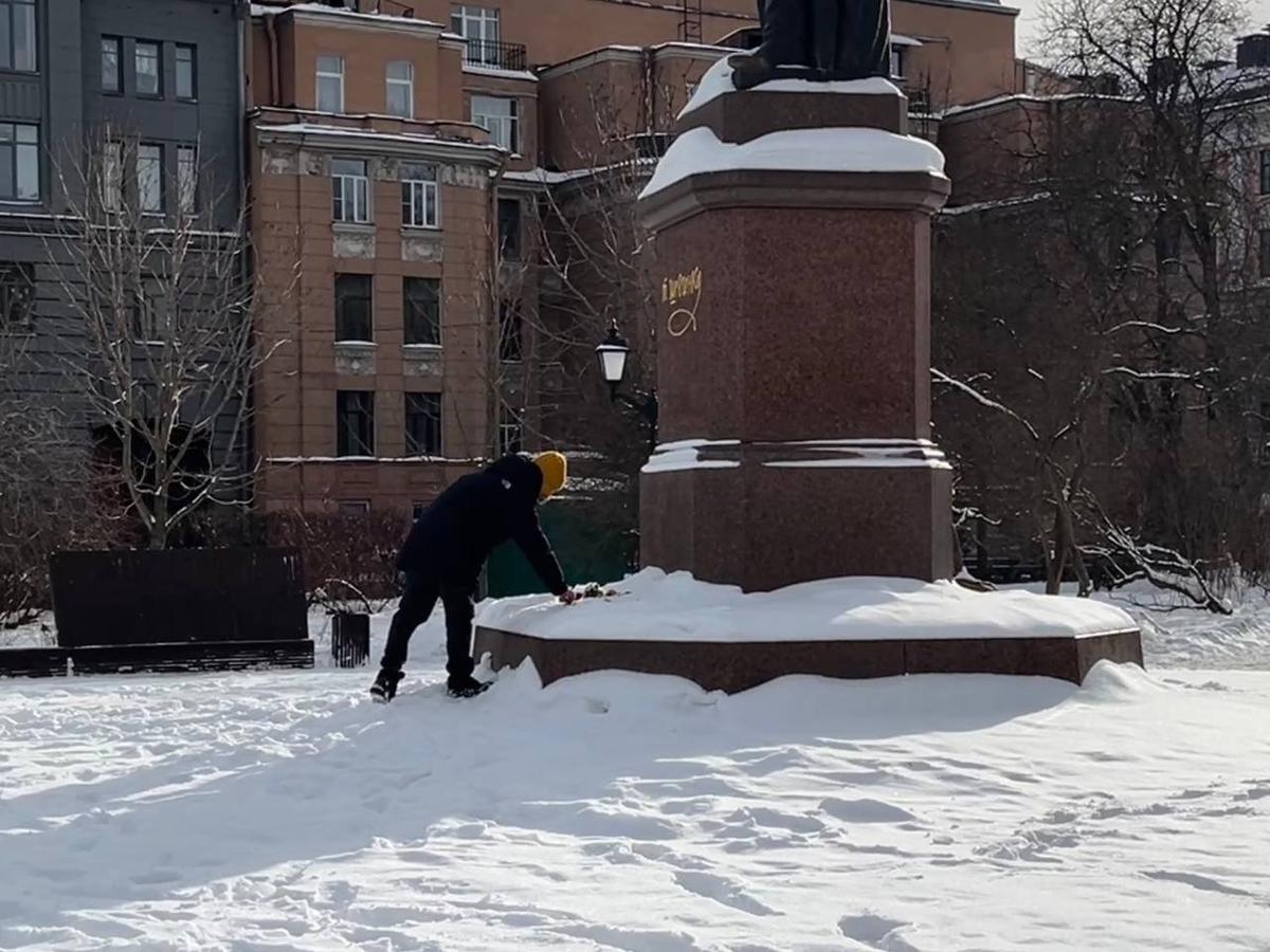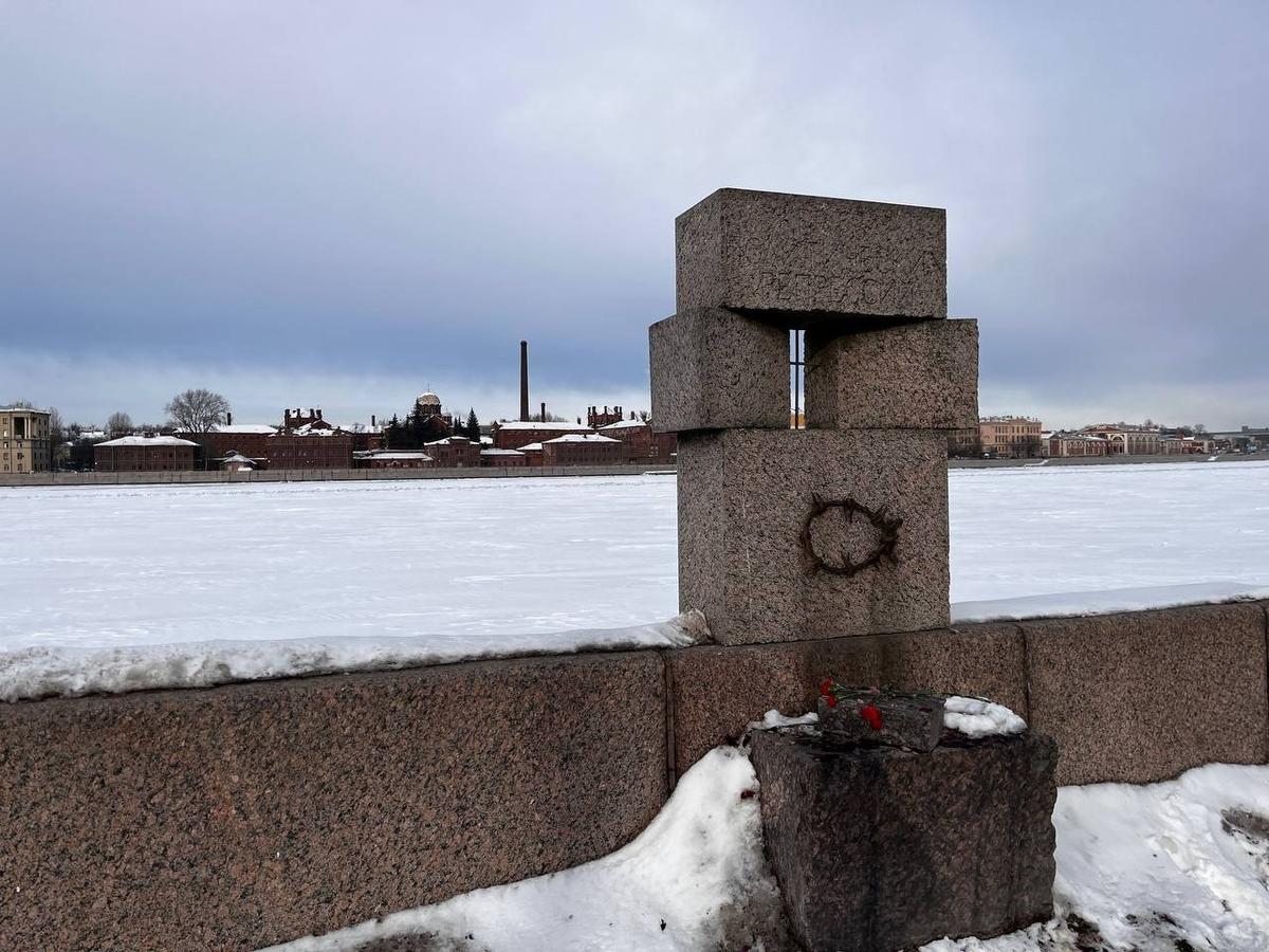 Цветы появились и на Воскресенской набережной у Мемориала жертвам политических репрессий. Там также дежурит полиция. При этом сама набережная находится на ремонте, но доступ к памятнику ограждения не перекрывают.