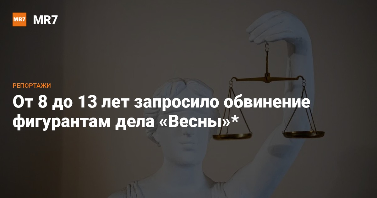 Шестерых фигурантов дела «Весны»* — Анну Архипову**, Яна Ксенжепольскоо**, Василия Неустроева**, Павла Синельникова**, Евгения Затеева** и Валентина Хорошенина** — обвиняют в создании экстремистского сообщества и участии в его деятельности, реабилитации нацизма, распространении фейков об армии, вовлечении в организацию массовых беспорядков, призыве к деятельности, которая сопряжена с побуждением граждан к отказу от исполнения гражданских обязанностей.