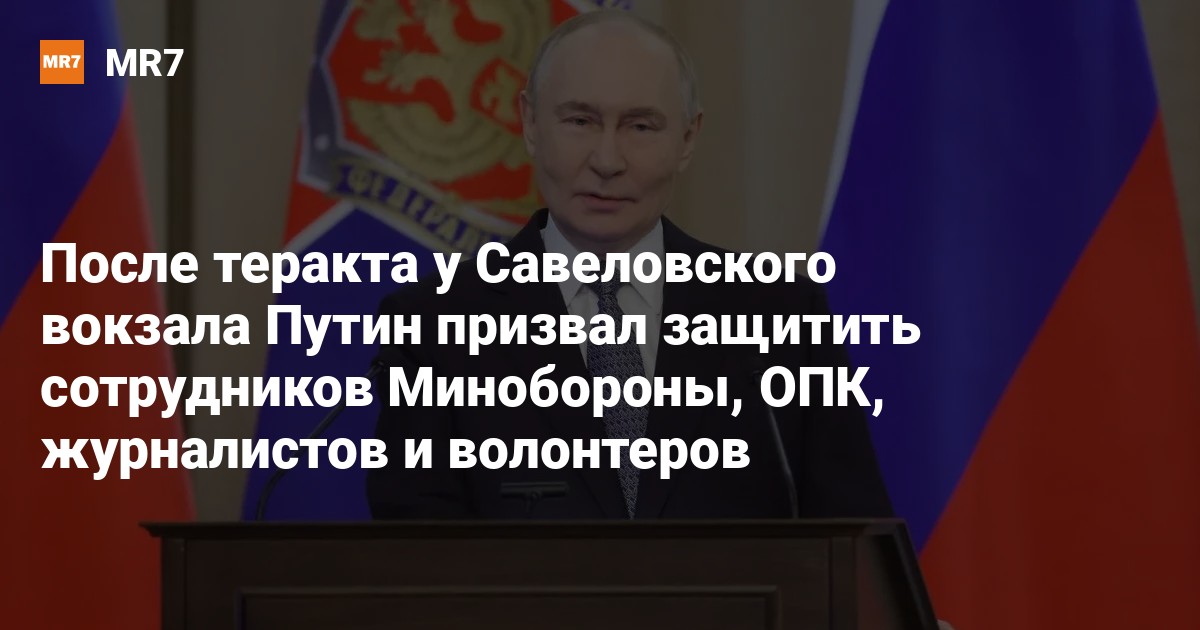 В качестве примера президент привел сегодняшний теракт у Савеловского вокзала и сообщил, что он стал следствием вербовки через интернет. В связи с данным терактом Путин поручил ФСБ усилить защиту высокопоставленных сотрудников Минобороны, оборонно-промышленного комплекса, представителей власти, а также лидеров общественного мнения, журналистов и волонтеров.