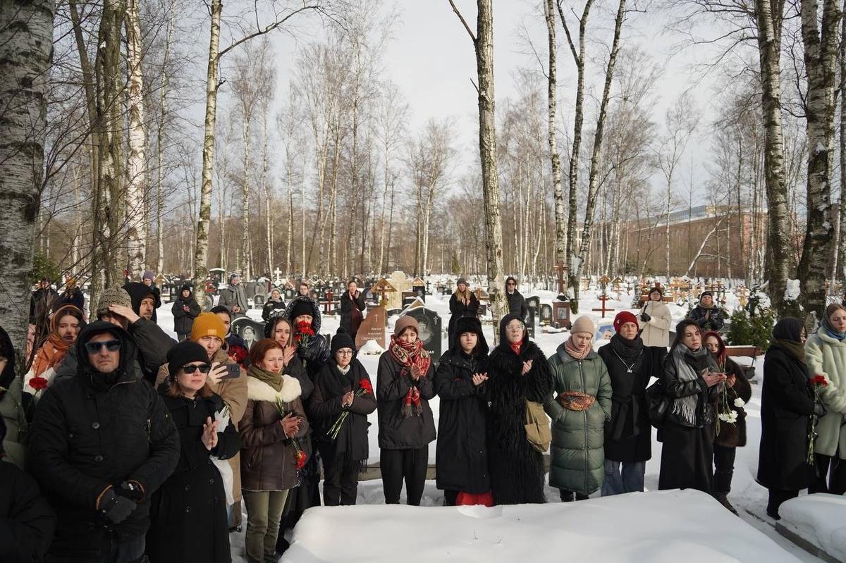 Утром 24 февраля желающие проводить музыканта в последний путь собрались у храма Феодоровской иконы Божией Матери.