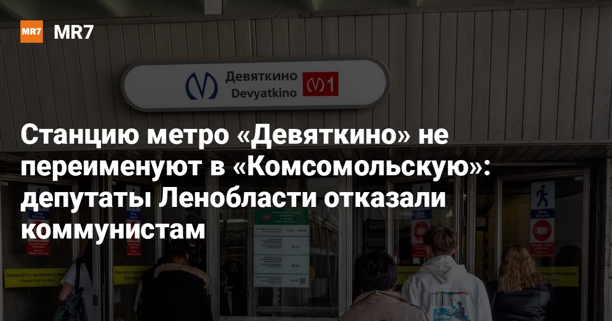 Законодательное собрание Ленинградской области не поддержало инициативу пяти депутатов от КПРФ переименовать станцию метро «Девяткино» в «Комсомольскую», сообщает «47.news». Обращаться к губернатору Петербурга с такой просьбой региональный парламент не стал.