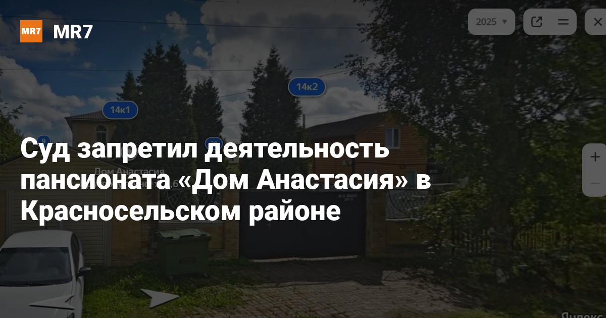 Накануне прокуратура рассказала о своей борьбе с другим пансионатом в Красносельском районе. Иск был подан к учреждению, расположенному на Авиационной улице в Горелово. Адрес «Дома Анастасия» — Старо-Паново, 1-я Заводская улица, дом 14, корпус 1.