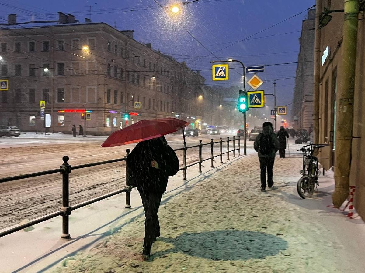 Ночью снегопад усилится. В пятницу в городе прогнозируют мокрый снег с дождем и гололед, а ветер усилится до 17 метров в секунду.