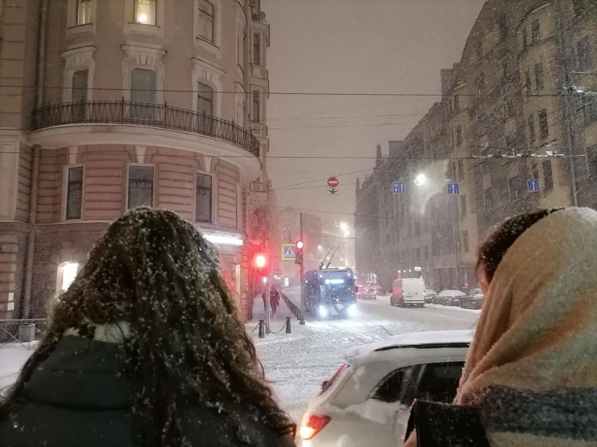 Петроградскому району снежная метель придала даже несколько таинственно-романтической атмосферы.