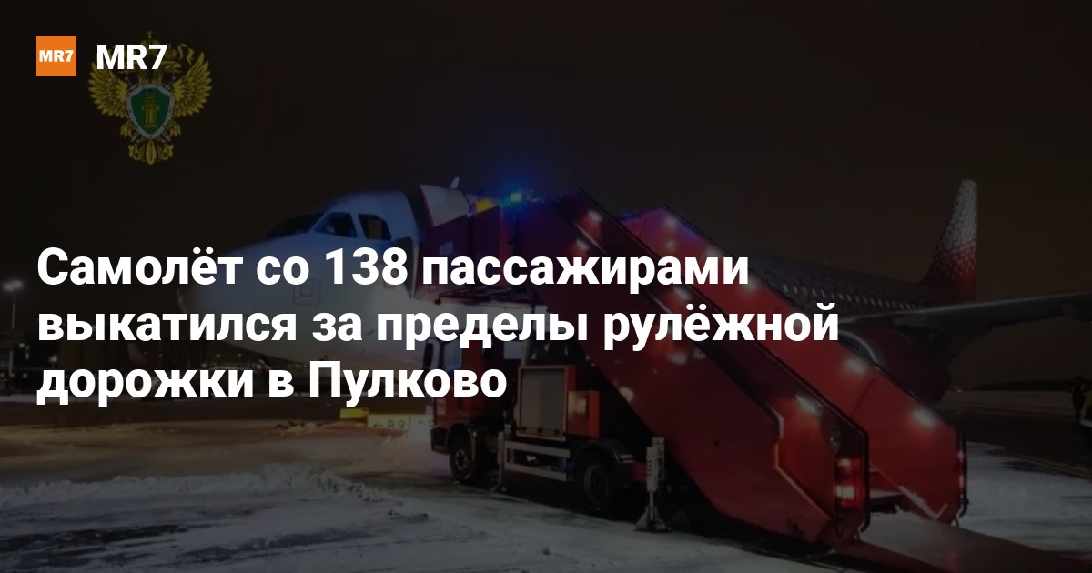 В аэропорту Пулково 27 февраля после посадки самолёт рейса Екатеринбург — Петербург выкатился за пределы рулёжной дорожки, сообщили в Северо-Западной транспортной прокуратуре.
