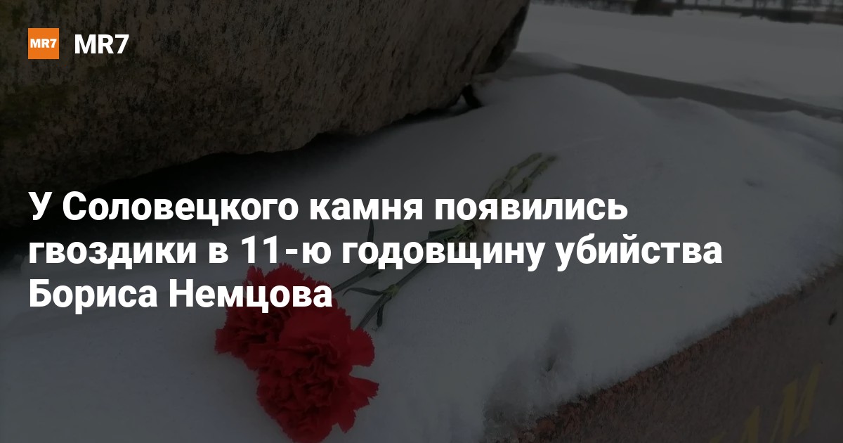 В 11-ю годовщину убийства российского политика Бориса Немцова у Соловецкого камня на Троицкой площади петербуржцы оставили гвоздики.
