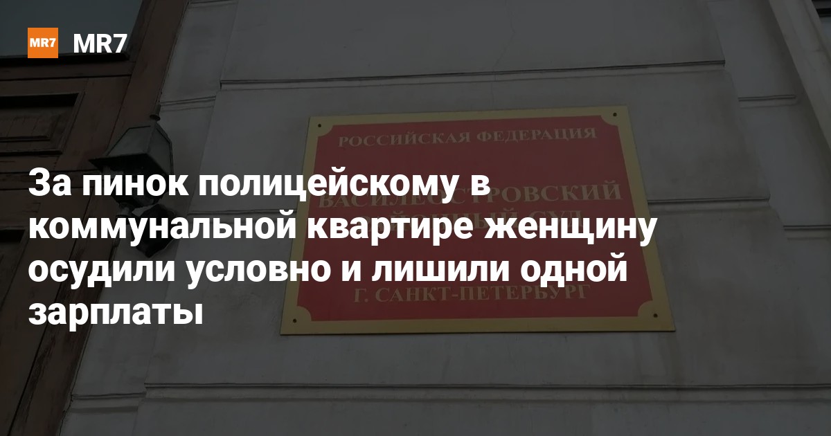 Василеостровский районный суд приговорил к двум годам условного срока петербурженку, оскорбившую и пнувшую полицейского в коридоре коммунальной квартиры. Как сообщает 27 февраля объединенная пресс-служба городских судов, женщину признали виновной по статье 318 УК (применение насилия к представителю власти) и статье 319 УК (оскорбление представителя власти).