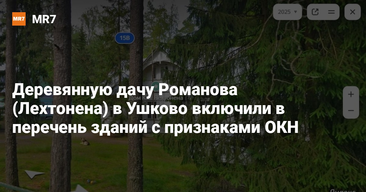 КГИОП 4 марта обновил список зданий, проходящих процедуру выявления в качестве памятников. К рассмотрению приняли заявку от градозащитников, желающих охранного статуса для здания бывшей дачи потомственного дворянина Н. Н. Романова в поселке Ушково (Сосновая улица, 15В).