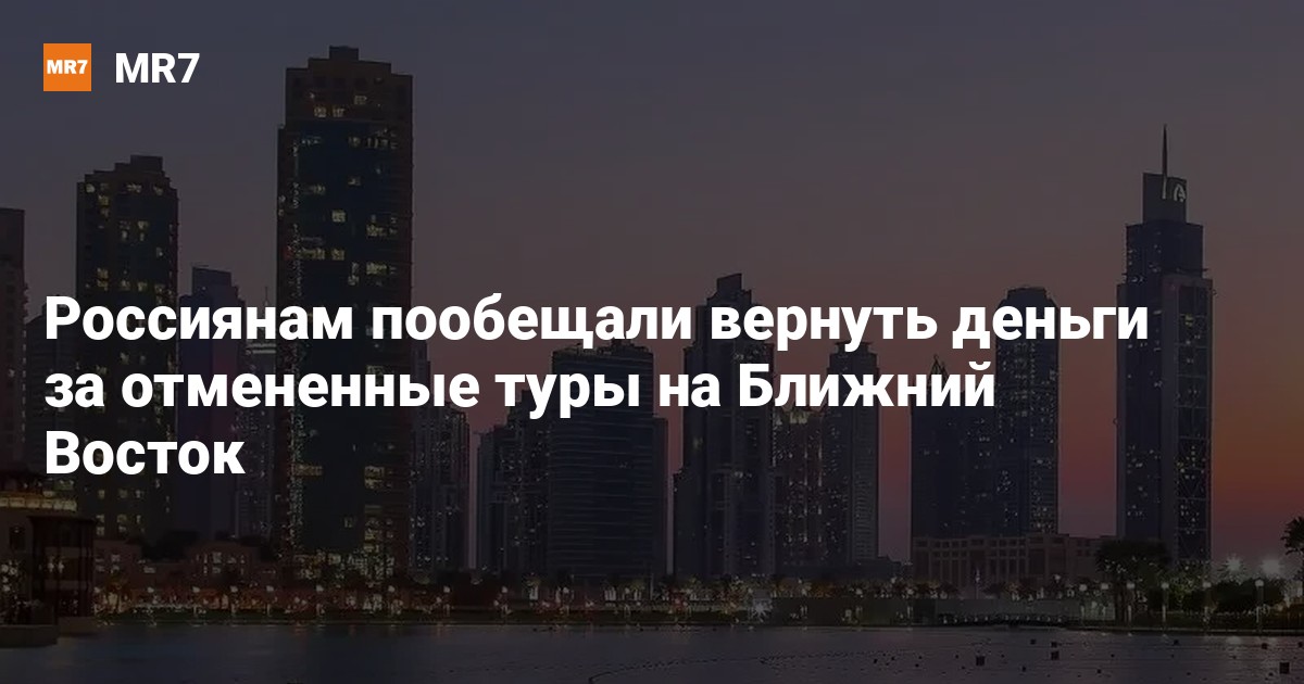 Власти России обязали всех туроператоров вернуть россиянам деньги за отмененные поездки на Ближний Восток в связи с военной эскалацией в регионе. Об этом 4 марта во время совещания правительства президенту РФ Владимиру Путину доложил глава минэкономразвития Максим Решетников.