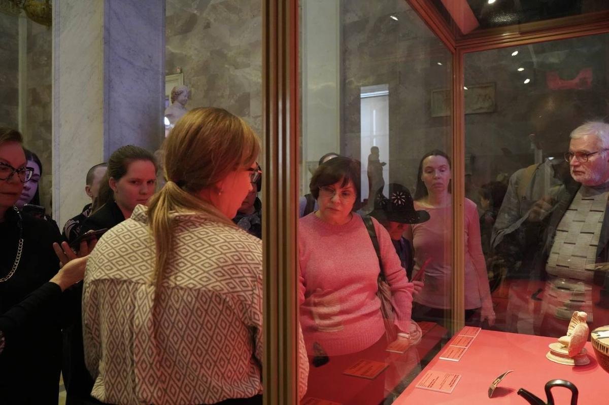 Центральным экспонатом стала скульптурная группа «Афродита и Эрот» («Венера и Амур») из коллекции маркиза Кампаны. Этот шедевр отражает преемственность художественных традиций и воплощает идею любви как божественного дара. Образ богини здесь раскрывается в интимном и одновременно символическом контексте, связанном с брачным союзом и идеей благословения.