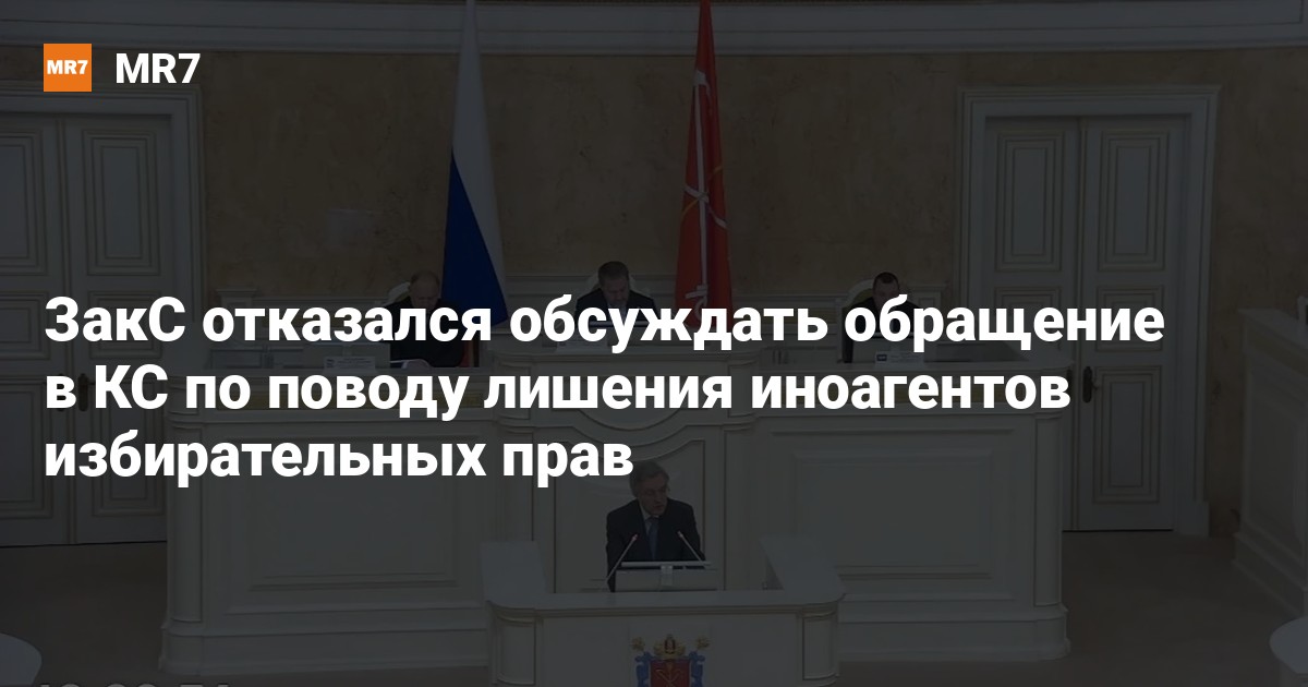 Добиваясь обсуждения проблемы, депутат Александр Шишлов указал, что она как минимум затрагивает интересы 10% петербургских избирателей. Он напомнил, что без всякого решения суда из-за своего «иноагентства» был досрочно лишен мандата его коллега Борис Вишневский*, избранный гражданами.